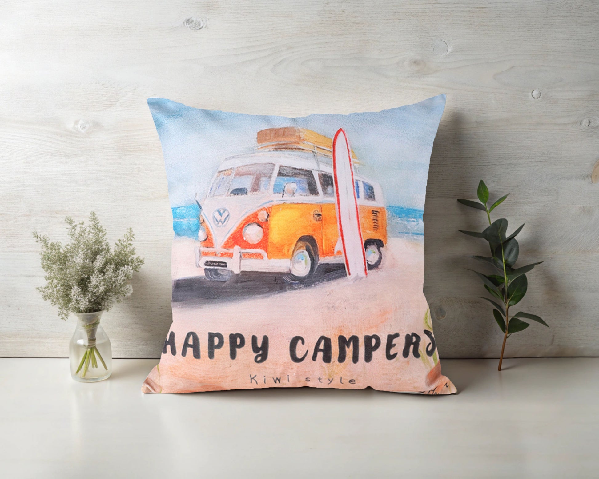 Happy Camper Kombi Velvet Cushion (Single Sided)