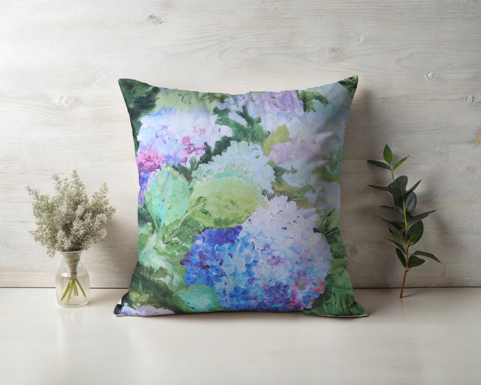 Hydrangea Blue Velvet Cushion (Single Sided)