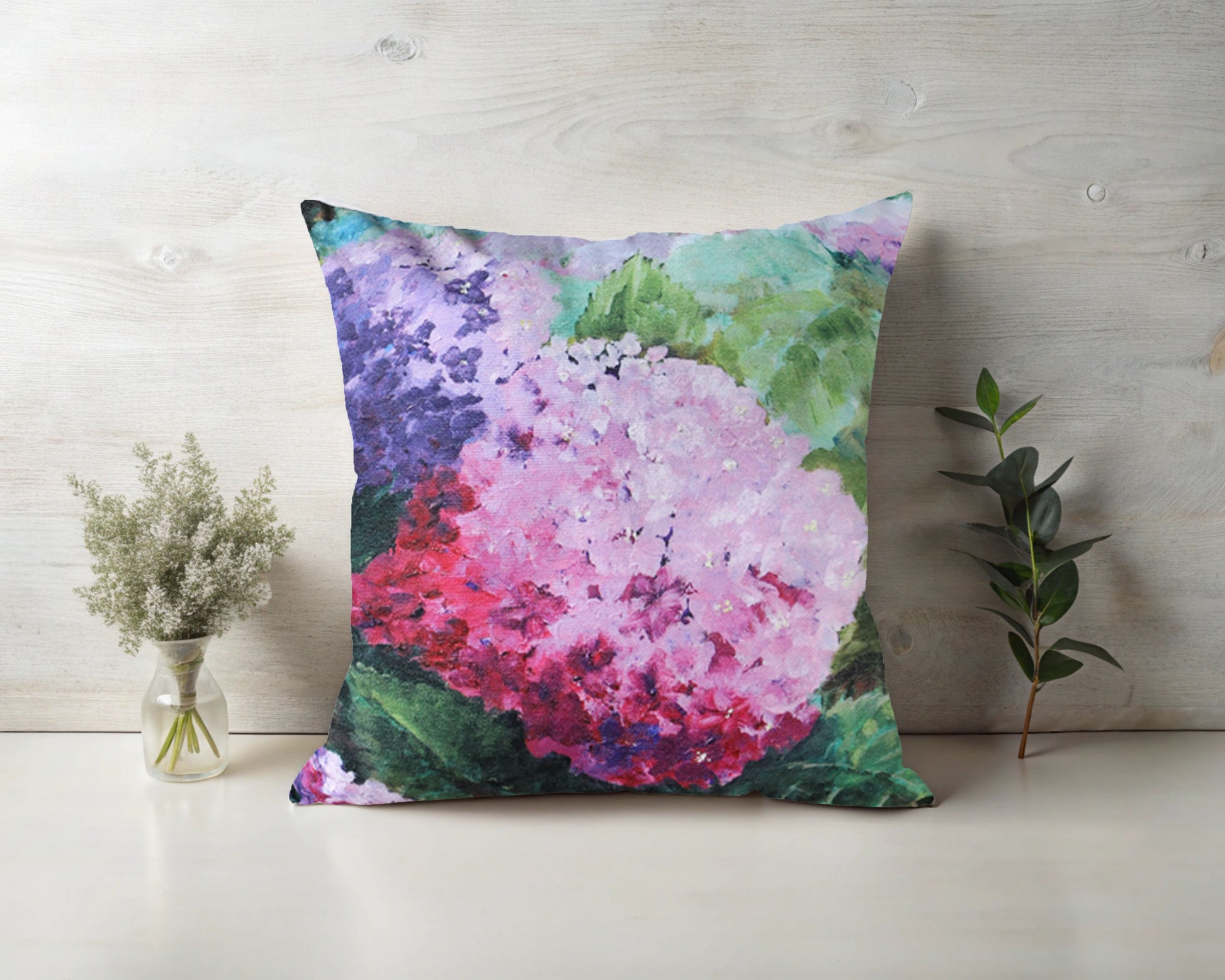 Hydrangea Pink Velvet Cushion (Single Sided)